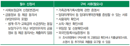 • 변동사항 신고: 소득·재산·가구 구성 변동 시 14일 이내 신고