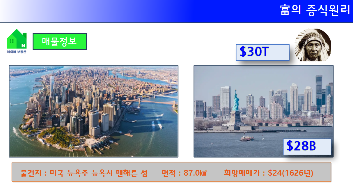 결론은 맨허튼을 판 인디언의 자산의 더 크다는 겁니다.