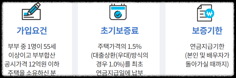 | 가입 가능한 주택 | 공시가격 12억 원 이하 | 시가 기준 12억 원 초과 고가주택도 일부 허용 |